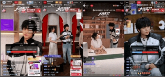 点进许多品牌直播间,二倍语速催促你买买买的主播不见了,溢出屏幕的各类样品也消失了——取而代之的,是一些从未见过的新奇玩意。比如,他们请来今年最爆火的短剧之一《十八岁太奶奶驾到,重整家族荣耀》的男女主角,穿越到直播间,表演了4段关于“家族继承人的试炼”的精彩番外故事。