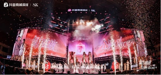 就在10月31日,抖音电商还在杭州奥体中心举办了“舞力盛放公演show”,邀请抖音上人气颇高的主播团们走出直播间,登陆线下大舞台,现场以舞蹈PK、游戏互动、引导领券等方式,助力抖音商家的双11成绩。