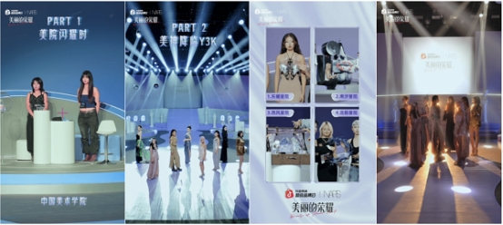 还有一种将电商与综艺内容的结合,则更为先锋大胆。今年双11前夕,彩妆品牌NARS联合抖音电商内容IP《美丽的荣耀》,让中国四大美院学生在直播间PK,比一比谁能用NARS的产品创造出具有未来感的妆容。