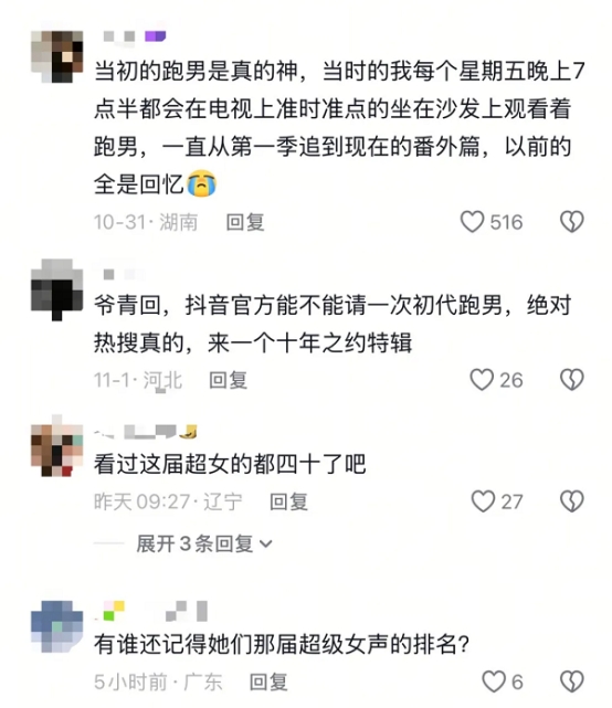 当然,就算你没看过短剧和团播,那也没关系,怀旧的人同样能在抖音双11找到被打动的时刻。比如,当“跑男兄弟团”李晨、郑恺、王祖蓝和“超级女声”何洁、黄雅莉,同框出现在抖音电商自制综艺《双11冲刺吧》,你身体里总会有那么一段年少记忆被唤醒了。